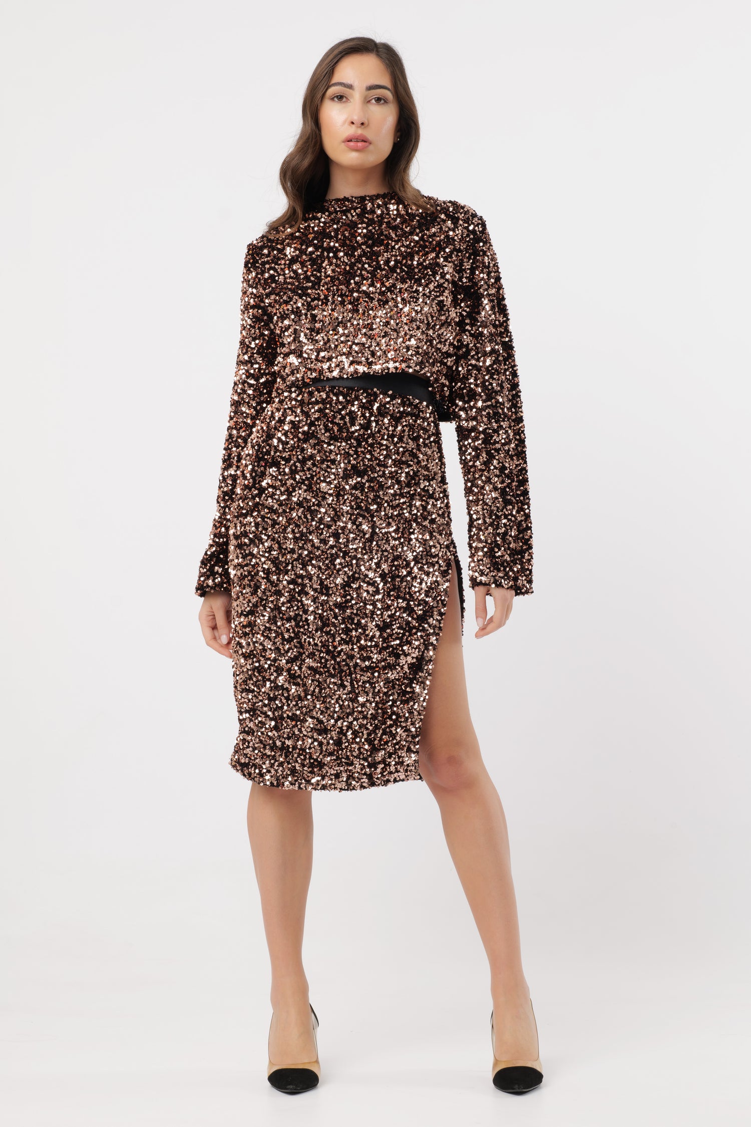 COORDINATO GIACCA E GONNA IN PAILLETTES