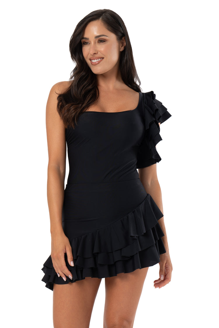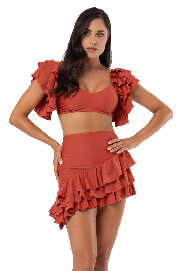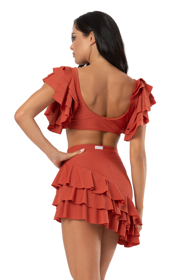 COPRICOSTUME IN LYCRA E BALZE CON VOLANT IN CHIFFON