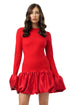 ABITO CORTO CON GONNA E MANICA A CAMPANA IN RASO