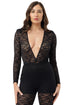 -Body con scollo a  V a manica lunga in pizzo traforato con spallina imbottita.